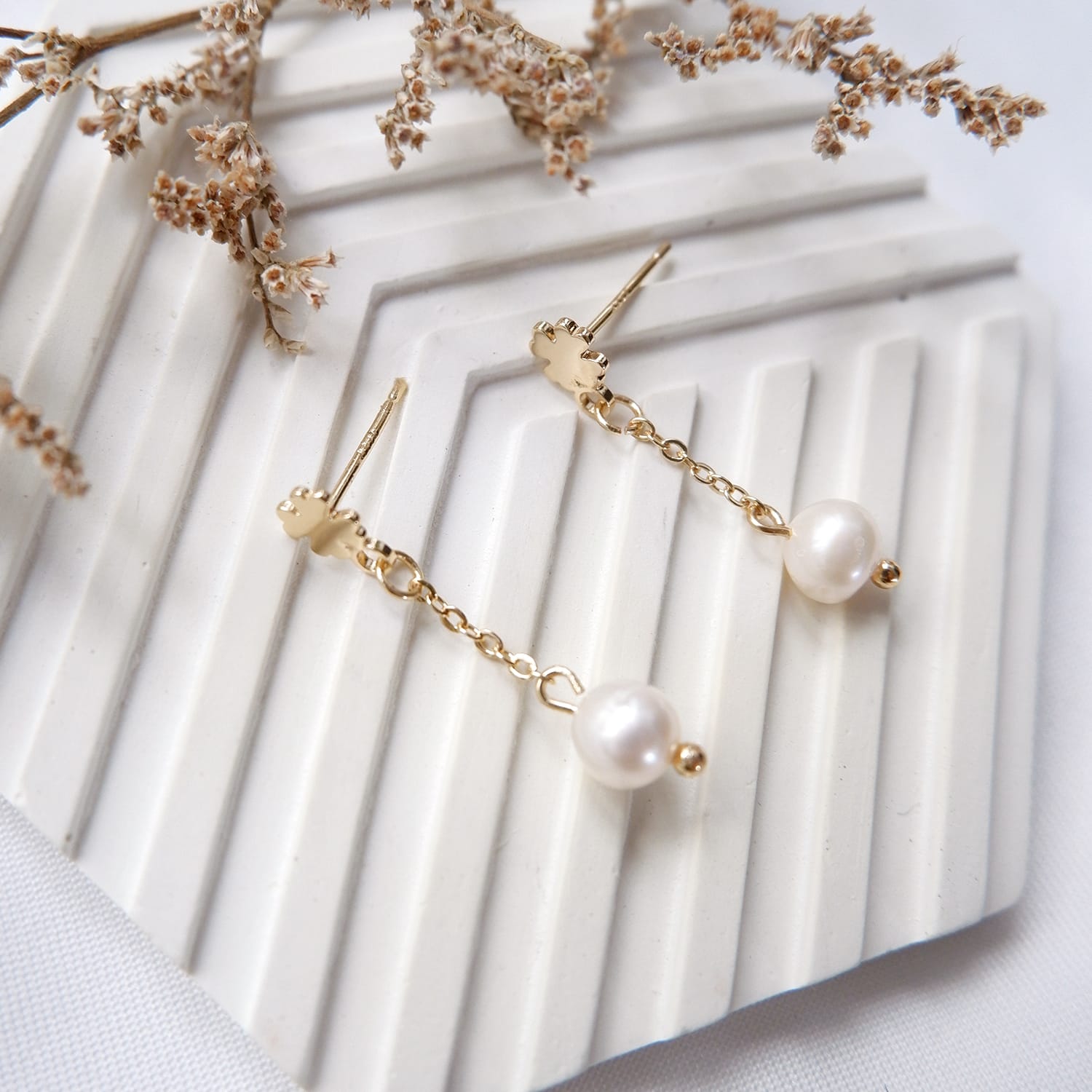 Hand assembled pearl earring, tarnish resistance, hypoallergenic and rust-free.
