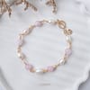 Handmade wire wrapped pearl and gemstone bracelet, tarnish resistance, hypoallergenic and rust-free.