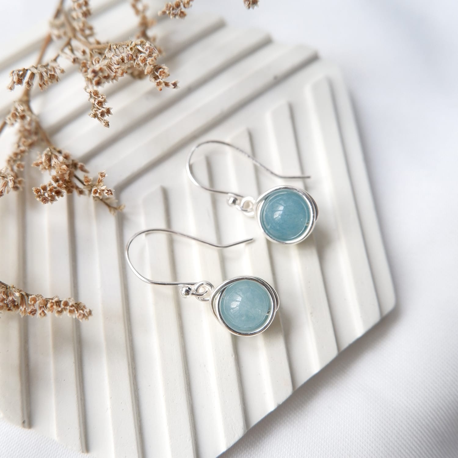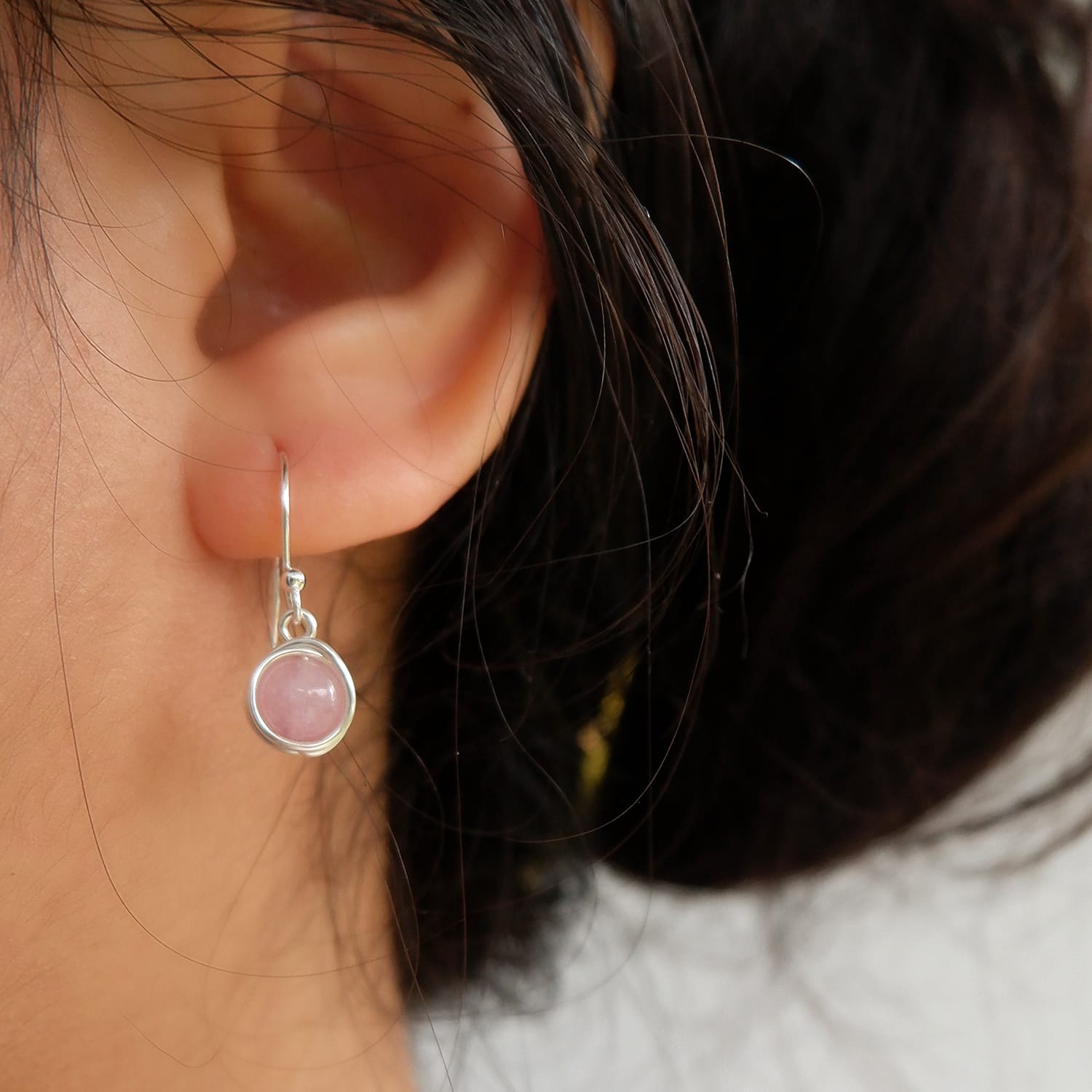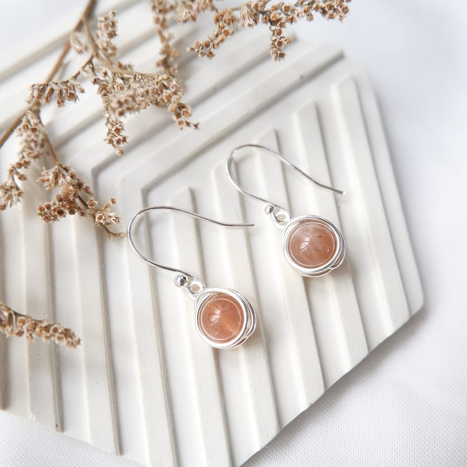 Handmade wire wrapped gemstone earring, tarnish resistance, hypoallergenic and rust-free.