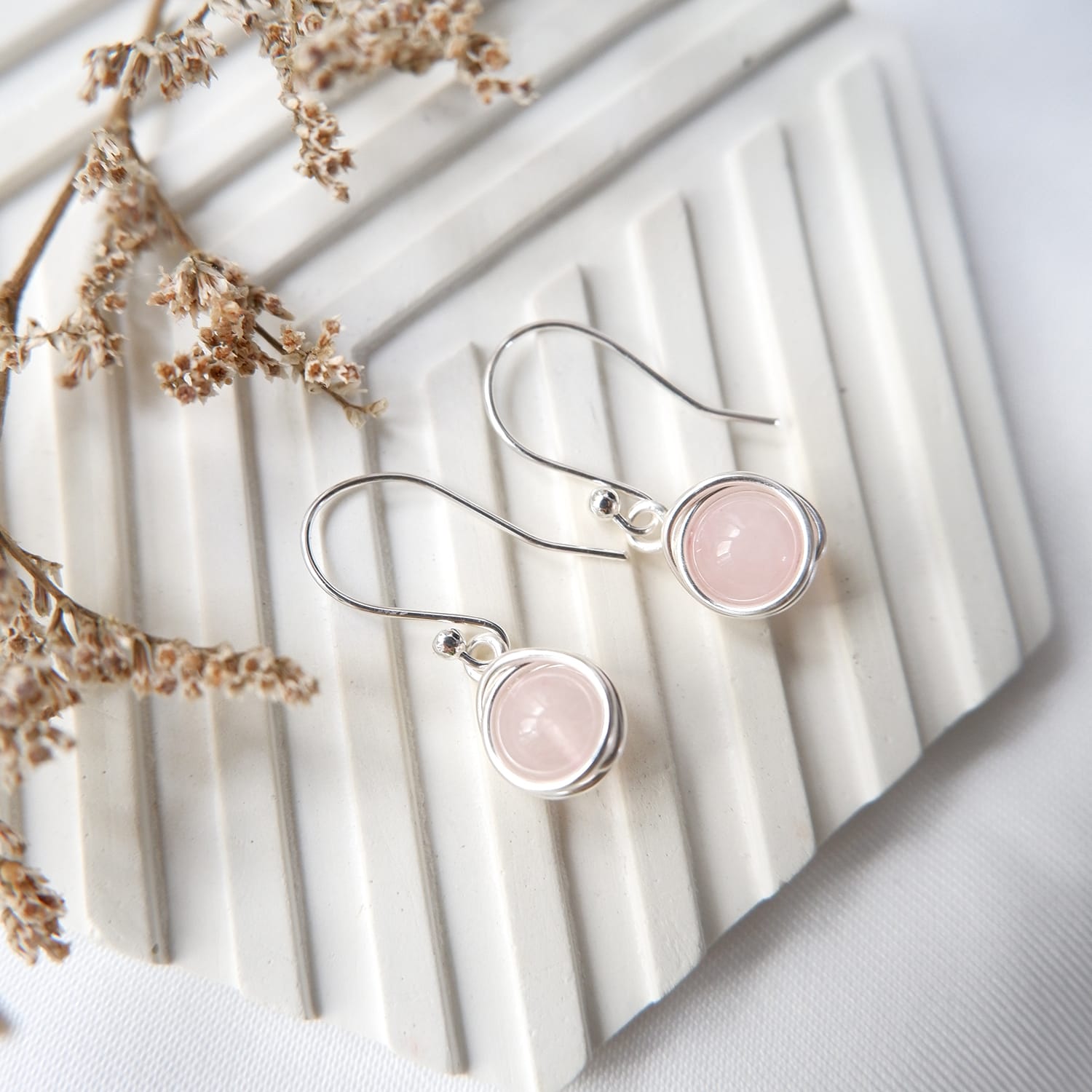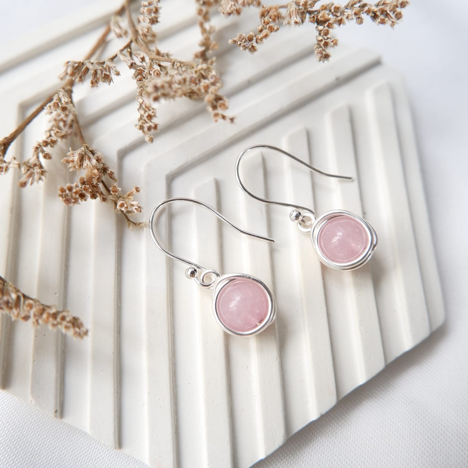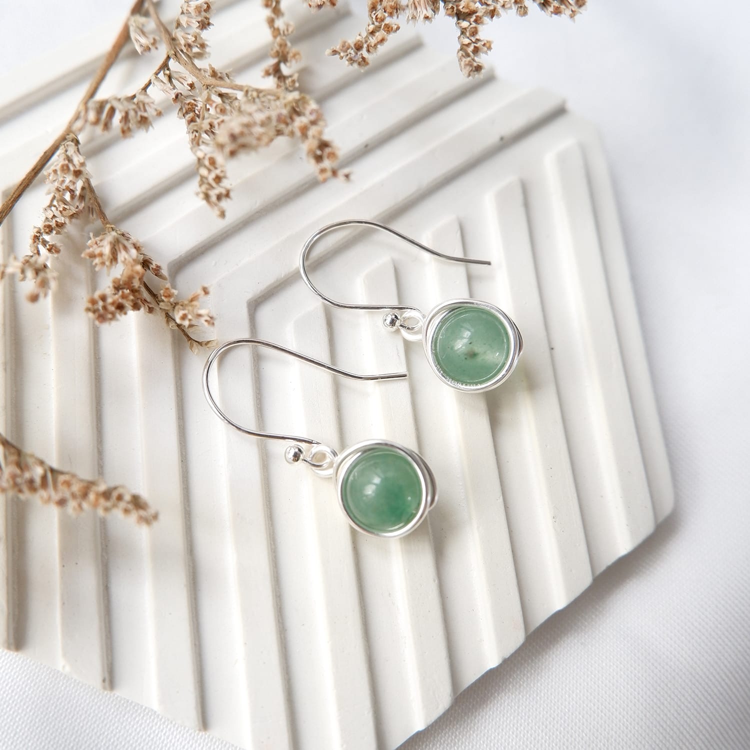 Handmade wire wrapped gemstone earring, tarnish resistance, hypoallergenic and rust-free.